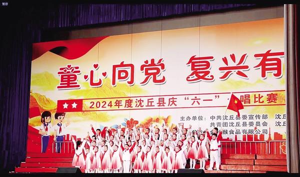 近日,沈丘县委宣传部、县教体局、共青团沈丘县委、县妇联等单位联合举办以“童心向党 复兴有我”为主题的合唱比赛,赢得广大群众和师生的盛赞。图为演出现场。记者 高洪驰 摄