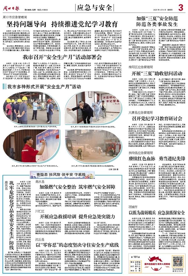 《通知》要求,各地各部门要综合研判分析“三夏”安全形势,结合“安全生产月”活动,开展各类安全宣传,加大宣传力度,充分利用广播、电视、网络、微信群、抖音等平台,普及夏季安全知识,增强人民群众安全防范意识。要针对“三夏”期间安全生产特殊性、复杂性,采取切实有效措施,全面开展安全风险研判,消除监管盲区,堵塞管理漏洞,做好农机安全、道路交通安全、用电安全、水域安全、防安全、有限空间安全、极端天气安全管理,确保“三夏”期间安全生产形势平稳。