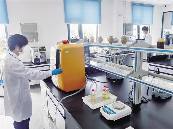 下图:河南瑞茂通粮油有限公司实验室工作人员在对产品进行数据分析。
