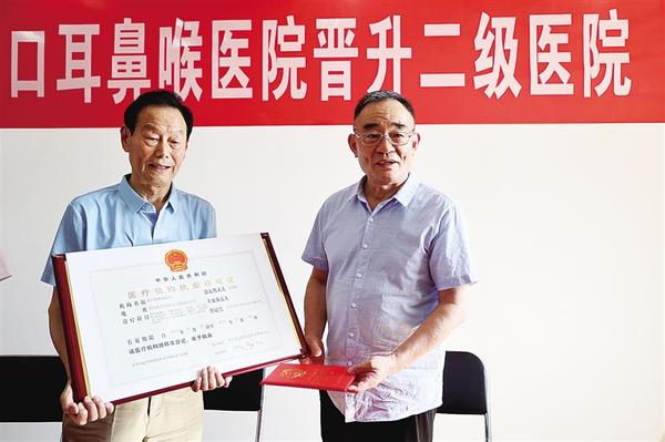 周口耳鼻喉医院秉承“艰苦创业、开拓创新、科技强院、勇攀高峰”的建院理念,持续优化就医流程,开展科研创新,提升医疗水平和服务质量,有力推动了耳鼻喉医学领域不断进步。该院成功升级为二级耳鼻喉医院。图为6月13日,川汇区卫生健康委员会向周口耳鼻喉医院颁发医疗机构执业许可证。