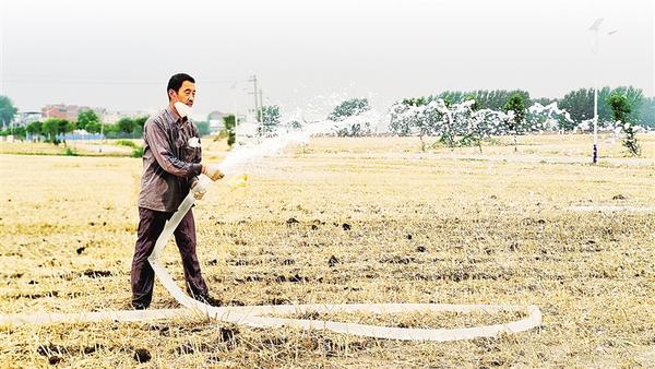 面对持续高温干旱天气,近日,项城市李寨镇科学分析研判当前形势,全面打响抗旱抢种“主动仗”。图为李寨镇一村民正在灌溉农田。