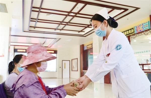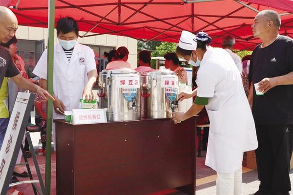 “所有人员都可以免费饮用。我们这里有绿豆汤,还有使用西洋参、石斛、荷叶、甘草等熬制的饮品,用中医药防暑、调理身体,更加健康有效。”在县中医院门诊大厅里,护士们热情地为刚进入大厅的就医群众提供服务。
