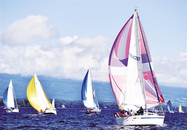 6月15日,来自法国的“Beija Flor”号帆船(前)在比赛中。当日,第85届日内瓦湖帆船赛在瑞士日内瓦开赛。比赛从日内瓦航海公司的码头出发,途经瑞士洛桑、法国依云小镇,最终抵达位于日内瓦湖东北端的瑞士蒙特勒,全程约125公里,大约用时31小时。新华社记者 连漪 摄