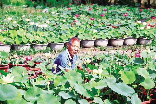 6月20日,商水县汤庄乡雷坡村村民在管理盆栽荷花。眼下正是荷花盛开的季节,盆栽荷花因其便于摆放、管理,既可用于布置庭院、办公大楼,又可点缀、美化居室环境.,深受广大市民青睐。 记者 马治卫 通讯员 刘飞 摄
