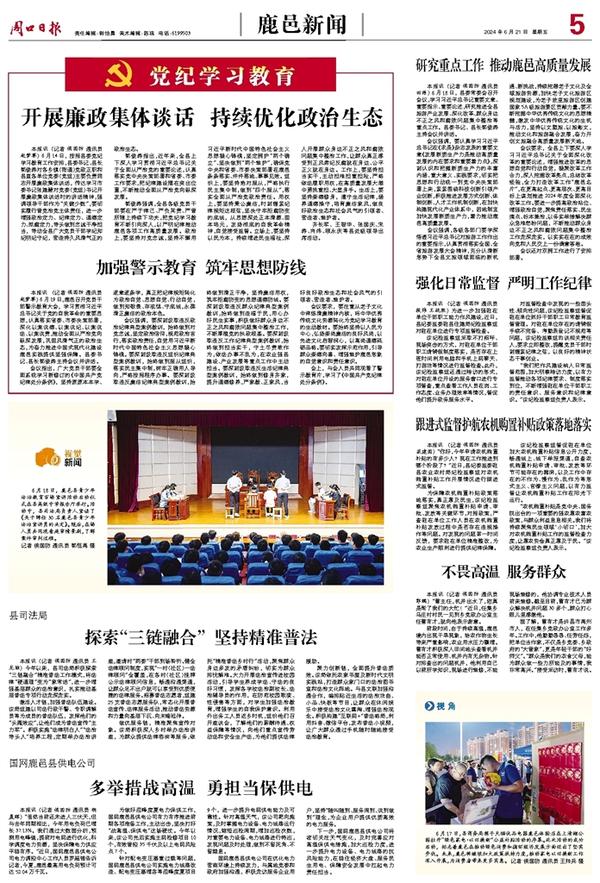 为做好迎峰度夏电力保供工作,国网鹿邑县供电公司有力有序推进前期各项准备工作,主动出击,坚决打好“战高温、保供电”这场硬仗。今年以来,该公司先后实施主网检修项目10个,有效管控35千伏及以上电网风险点7个。