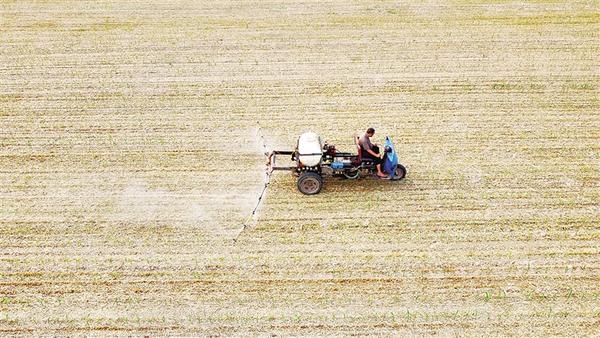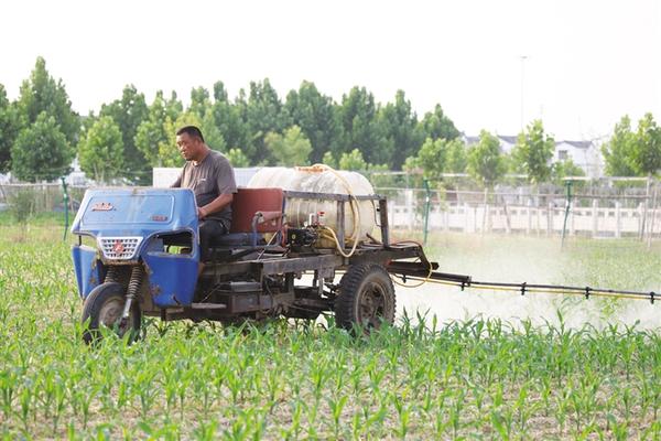 当前正是田间管理的关键时期。我市各地农民抢抓晴好天气,对秋作物喷洒农药防病防虫,确保秋粮丰产丰收。图为6月20日,淮阳区王店街道王楼村村民正在田间喷洒农药。记者 刘俊涛 摄