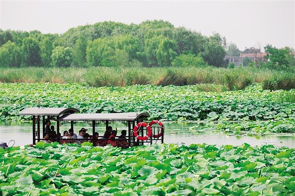 在淮阳龙湖湖畔,夏日的微风轻轻拂过,带来了荷花的淡淡清香。湖面上,荷叶翠绿如盖、层层叠叠,宛如一幅生动的绿色画卷。图为6月23日,在淮阳龙湖绿色的海洋中,荷花正含苞待放,静静地等待着宾客的到来。记者 刘俊涛 摄