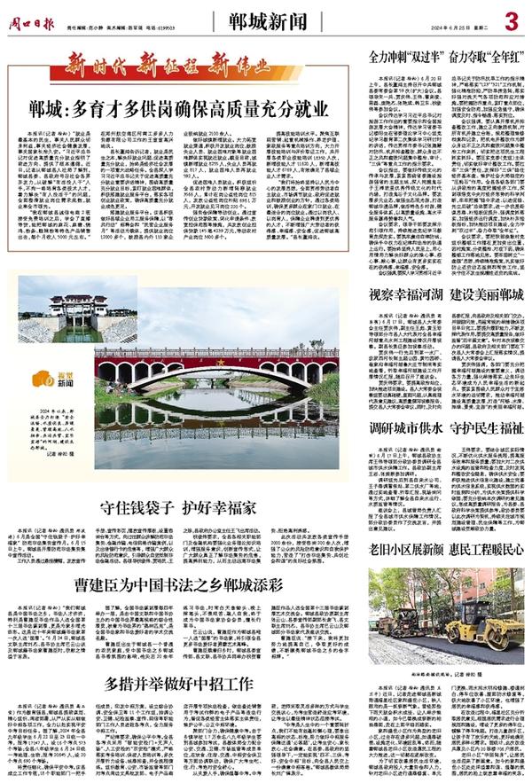 “我们将始终坚持以人民为中心的发展思想,全面贯彻劳动者自主就业、市场调节就业、政府促进就业和鼓励创业的方针,通过各类培训,确保更多群众在家门口就业、在最适合的岗位就业。通过以岗找人、以岗育人,保障企业聘请到更优秀的人才,不断增强广大劳动者的获得感、幸福感、安全感,促进郸城高质量发展。”县长董鸿说。