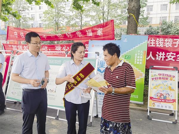 本报讯 为增强群众防范非法集资意识,营造全民防非、主动拒非良好氛围,从源头上遏制非法集资案件发生,6月15日,邮储银行周口市分行法律与合规部和邮储银行川汇区支行组织7名工作人员,在五一文化广场开展以“守住‘钱袋子’ 护好幸福家”为主题的防范非法集资集中宣传活动。