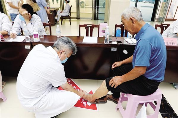 6月19日,中国红十字基金会联合河南大学第一附属医院,在太康县人民医院开展“健康联县”义诊交流活动,让群众在家门口享受到优质医疗服务。图为义诊现场。 史书杰 摄