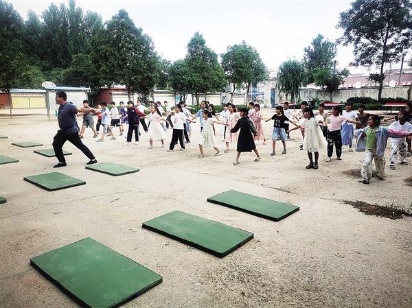 6月18日,箕子台街道明德小学体音美老师走进杜岗小学开展送教活动。图为老师带领学生上体育课。通讯员 夏振华 摄