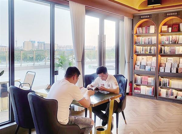 6月30日,两位读者在位于周口市城乡一体化示范区便民服务中心的沽读书廊天台店阅读。 近年来,我市大力推进实体书店建设,推出以沽读书廊为代表的一系列精品书店。 作为第三届全民阅读大会·年度最美书店,沽读书廊以一线城市高端书店为标准,致力打造周口城市文化会客厅,用融合餐饮、城市景观等元素创意打造阅读空间,用氤氲书香改变城市气质。记者 乔小纳 摄