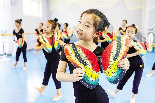 7月3日,小朋友在河南省宝丰县一家舞蹈培训机构练习舞蹈。 暑假期间,河南省平顶山市宝丰县不少孩子参加游泳、舞蹈、音乐等培训学习,增长才艺,乐享暑期。新华社发(何五昌 摄)