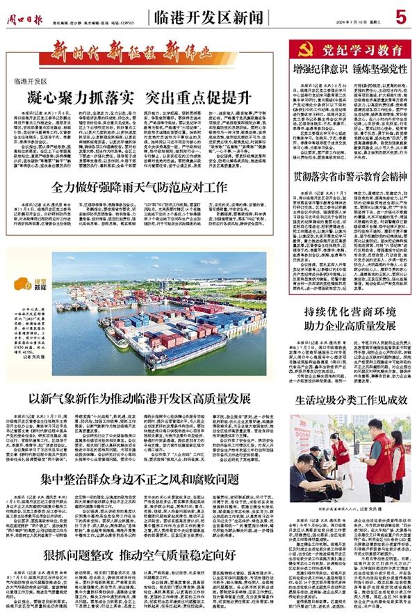 本报讯(记者 宋风 通讯员 张金刚) 今年5月份以来,周口临港开发区认真落实垃圾分类工作要求,明确责任,强化落实,全区垃圾分类工作取得明显成效。