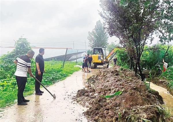 图②:7月16日,淮阳区城关回族镇片区干部指导贾庄村疏通沟渠。