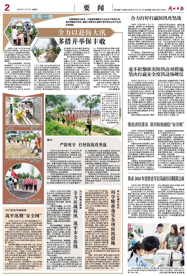 皇甫立新强调,各级各部门要树牢底线思维,克服麻痹思想,严格落实“123”和“321”防汛工作机制,立足防大汛、抢大险、救大灾,以“时时放心不下”的责任感,抓紧抓实防汛备汛各项工作,全力确保人民群众生命财产安全。要明确农田积水抽排工作思路,科学统筹调度,及时疏浚田间沟渠,加快引流排水进度,把积水对农作物的影响降到最小。要组织乡村干部分区包片,对老旧房屋、地势低洼处房屋进行排查,做好汛期房屋安全风险防范。要加大对排水闸等设施的巡查力度,紧盯防汛仓库、配电设备等重点部位,抓好防汛备汛实战化工作。要强化协调联动,做好抢险救援准备,确保抢险救援队伍关键时刻拉得出、冲得上、打得赢。①7