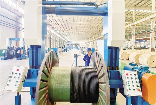 位于川汇区的河南通达久通新能源电线电缆项目总投资约1亿元,建设风电光电、新能源汽车专用电线电缆生产线3条。目前,该项目的软件技术更新已经完成,3台连续硫化机组试生产成功。据介绍,项目满产后,预计年产值可达2亿元,实现利税3500万元。图为工人正在生产车间紧张工作。