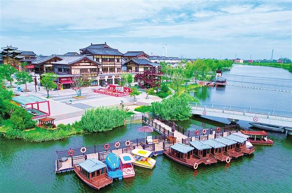 7月22日上午,蓝天白云下的运河古镇格外迷人。这条古运河,曾是宋代黄河决堤南下入淮河的通道,也开启了周口内河漕运的历史。 记者 梁照曾 摄