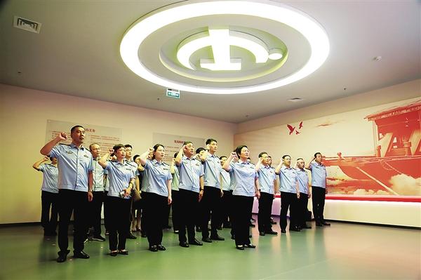 随后,全体党员干部面对党旗,神情肃穆,右手握拳,重温入党誓词:“我志愿加入中国共产党……”在掷地有声的誓言中,大家再一次感受到作为党员的荣耀、使命和责任,更加坚定信仰信念。