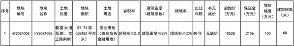 一、拍卖地块的基本情况和规划指标要求(详情见下表)