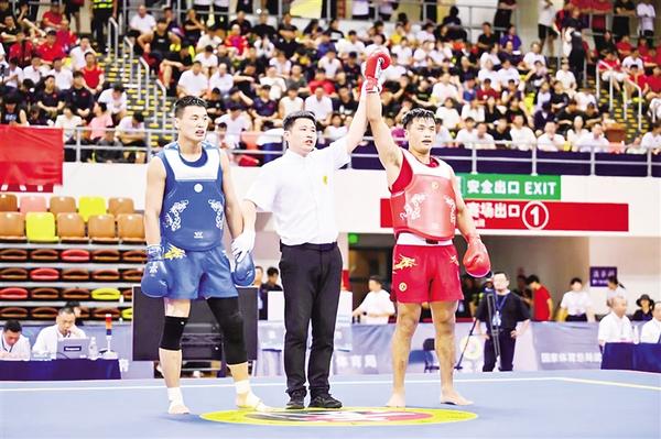 近日,2024年全国武术散打锦标赛在广东湛江收官,西华籍散打名将张豪(右)荣获85公斤级冠军。图片由张豪提供