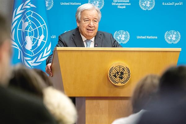 7月25日,联合国秘书长古特雷斯在纽约联合国总部就极端高温发表讲话,呼吁采取全球行动,应对气温上升带来的挑战。