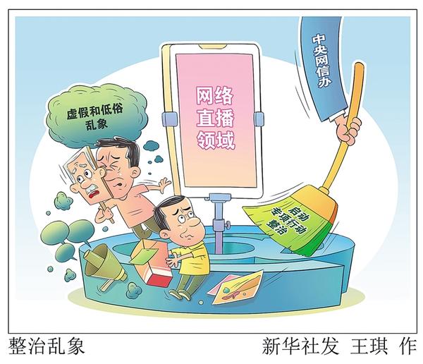 记者7月31日从中央网信办获悉,为督促网络直播平台落实主体责任,强化网络主播行为管理,推动网络直播行业健康有序发展,中央网信办近日印发通知,在全国范围内部署开展为期1个月的“清朗·网络直播领域虚假和低俗乱象整治”专项行动。新华社发 王琪 作