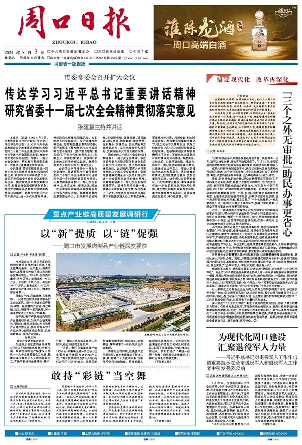 围绕党的二十届三中全会《决定》和省委十一届七次全会精神,各位市委常委和市政府副市长结合各自分管工作分别发言,提出贯彻落实意见建议。会议强调,要深入学习贯彻党的二十届三中全会精神,全面准确理解把握全会《决定》提出的进一步全面深化改革的重大举措,认真落实省委十一届七次全会各项部署要求,坚持和用好关键一招,持续在全面改革上做文章、深化改革上下功夫,为推进中国式现代化建设周口实践提供强大动力和制度保障。要坚持对标对表,对照全会《决定》逐条梳理,聚焦重点领域和关键环节,既立足当下又着眼长远,找准工作结合点、切入点,协同联动推进各领域改革,在破解深层次体制机制障碍上下功夫,不断优化完善现代化周口建设的目标体系、制度体系、工作体系,以改革破难题、增动力、添活力。要以经济体制改革为牵引,以促进社会公平正义、增进人民福祉为出发点和落脚点,更加注重系统集成,更加注重突出重点,更加注重改革实效,结合周口实际研究细化,广泛听取意见建议,谋深谋实我市进一步全面深化改革的具体举措,建立责任明晰的改革推进机制,最大限度凝聚改革共识,让改革措施成色更足、操作性更强。①7