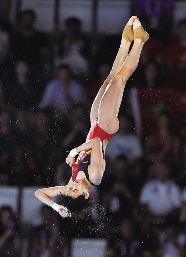 ▲ 8月6日,中国选手全红婵在比赛中。当日,在巴黎奥运会跳水项目女子10米跳台决赛中,中国选手全红婵获得金牌,另一名中国选手陈芋汐获得银牌。 新华社记者 张玉薇 摄