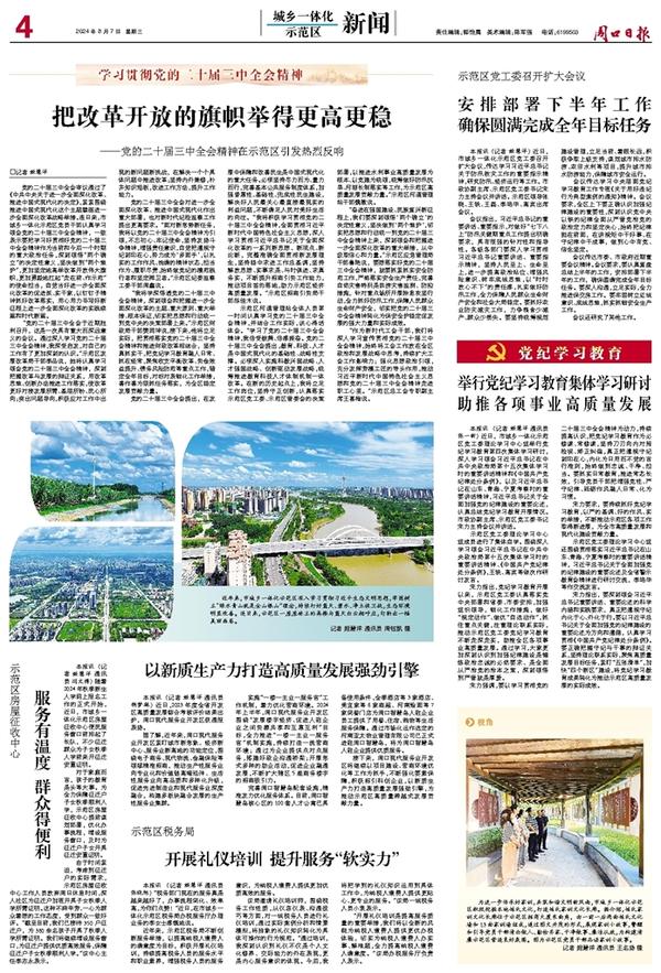 宋力要求,要持续抓好党纪学习教育,以严的基调、好的作风、实的举措,不断推动示范区各项工作取得新进展,为全市高质量发展和现代化建设贡献力量。