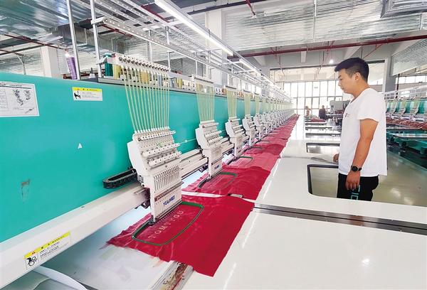 位于扶沟县的世成织造年产织布2万吨、四件套120万套建设项目,总投资约2亿元,安装织造生产线 8 条,可年产织布2万吨、四件套120万套。目前,项目已建成投产,预计可实现年产值5亿元、利税4000万元,安排就业80人以上。图为工人正在加工生产四件套。 记者 王映 摄