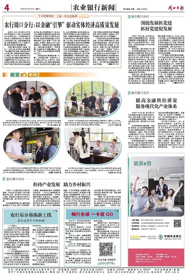 本报讯 产业振兴是乡村振兴的基础。今年以来,作为服务“三农”的国家队和主力军,农行周口分行牢记初心使命,把服务乡村振兴作为全行工作的重中之重,全力支持乡村产业发展。