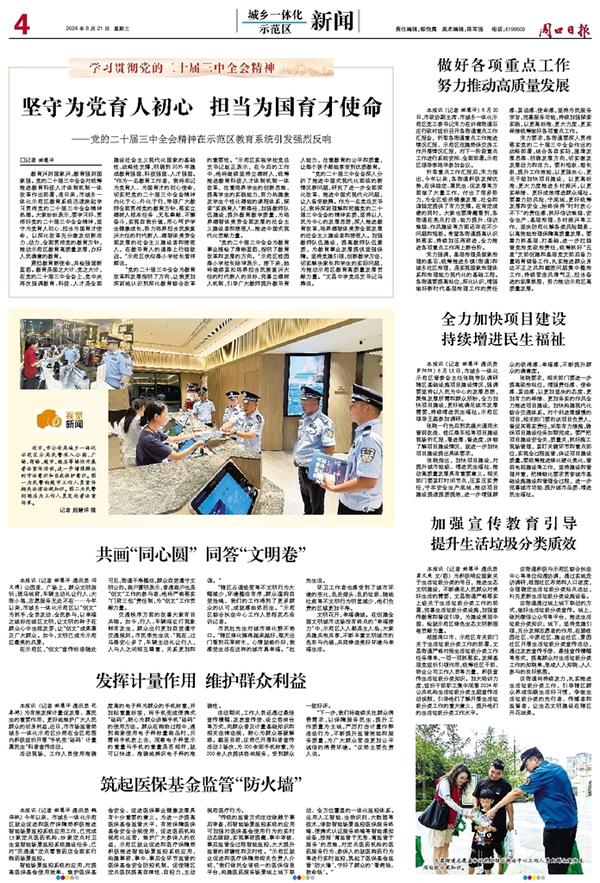 教育兴则国家兴,教育强则国家强。党的二十届三中全会对统筹推进教育科技人才体制机制一体改革作出部署,连日来,市城乡一体化示范区教育系统迅速掀起学习贯彻党的二十届三中全会精神热潮。大家纷纷表示,要学习好、贯彻好党的二十届三中全会精神,坚守为党育人初心、担当为国育才使命,以深化改革充分激发创新活力、动力,全面贯彻党的教育方针,推动示范区教育高质量发展,办好人民满意的教育。