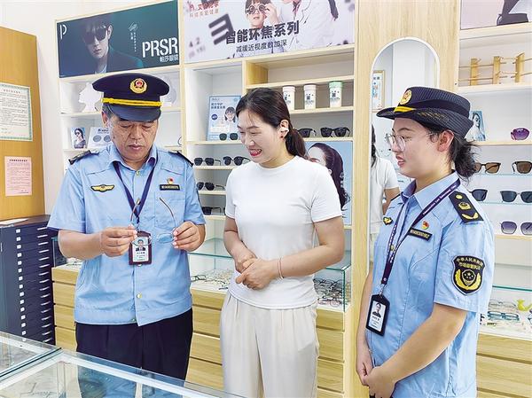 连日来,周口市市场监管局港区分局加大眼镜配制计量器具检验检测工作力度,并开展计量诚信公示承诺活动。图为8月19日,该局市场监管人员在一眼镜店进行检查。王燕 摄