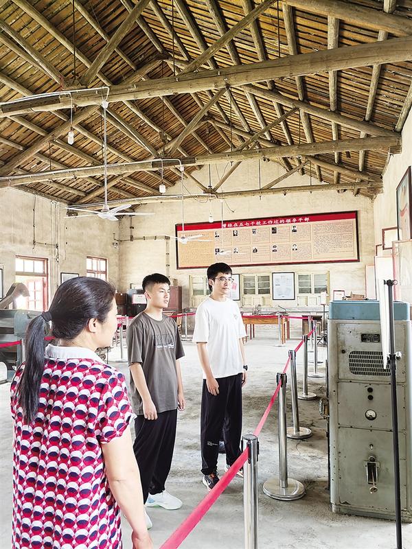 近日,郑州大学大学生暑期“三下乡”社会实践服务队走进西华县五七干校旧址博物馆,接受爱国主义和革命传统教育。图为郑州大学医学院2020级学生袁旭(右一)被革命文物深深吸引。 记者 张猛 孙靖 摄