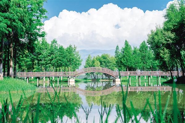 这是8月21日拍摄的茈碧湖一景。 茈碧湖位于云南省大理白族自治州洱源县东北部,是洱海重要的优质水源补给地。洱源县通过系统治理,实施茈碧湖幸福河湖项目和山水项目,确保了茈碧湖生态环境持续改善,呈现出一幅白云碧水的美丽画卷。 新华社记者 彭奕凯 摄