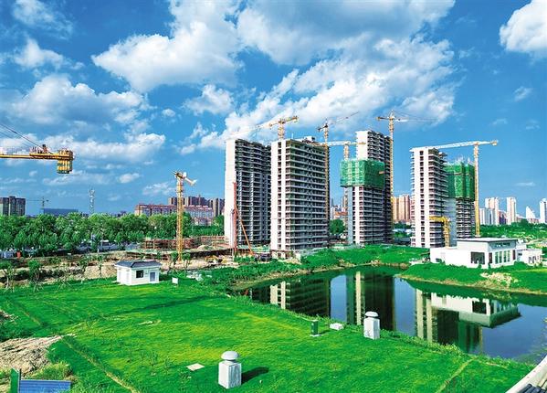 8月22日下午,中心城区沙颍河畔一个建设中的房地产项目,在蓝天白云、碧草绿水的映衬下显得格外美丽。近年来,我市中心城区建设越来越好,群众的生活质量越来越高、幸福感越来越强。