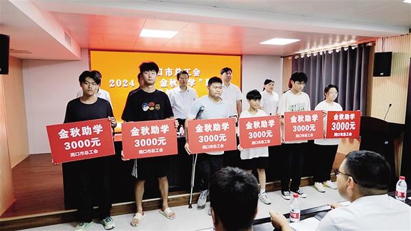 为解决部分即将步入大学的困难职工子女和品学兼优的在读困难学生的实际困难,8月23日,市总工会举行2024年“金秋助学”助学金发放仪式。据了解,截至目前,全市各级工会“金秋助学”活动共筹措资金133万元,资助困难学生409人。 记者 王晨 摄