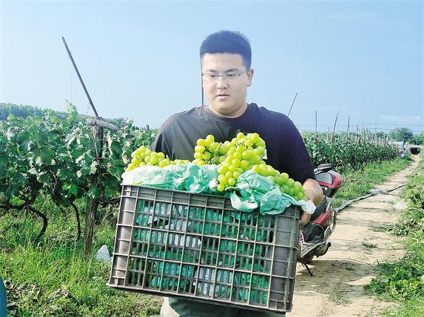 谈起自己种植的葡萄,聂鹏的自豪感溢于言表。采摘、分拣、包装,十几位工人在大棚里忙忙碌碌,一筐筐葡萄被搬运上客商的货车,销往各地。