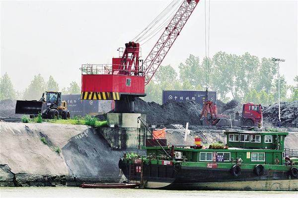 8月27日上午,商水港一片繁忙景象。近年来,经过持续发展,商水港逐渐成为以运输煤炭为主的特色港口。据介绍,源源不断的山西优质煤炭通过火车运到商水后,经商水港运往安徽、江苏等地。