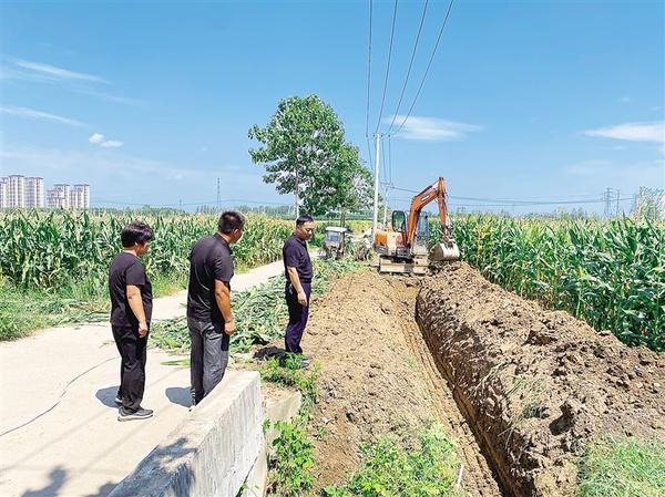 前段时间,商水县练集镇境内持续降雨,造成村庄内坑塘溢水、部分农田低洼处积水严重。该镇党员干部全员上阵、干部群众勠力同心,挖沟修渠,排水除涝,用实际行动践行初心使命,让党旗在排水除涝一线高高飘扬。