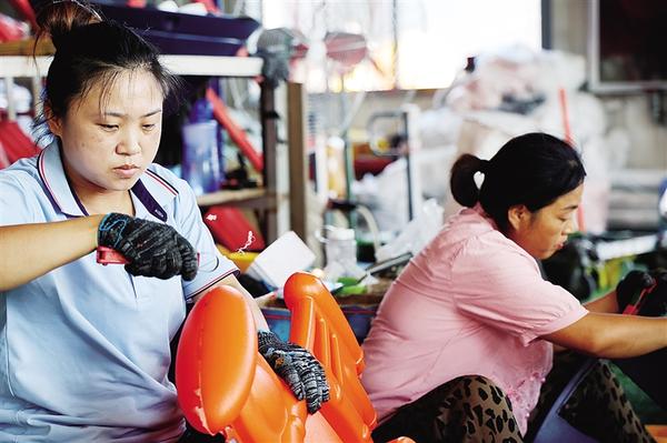 淮阳区安岭镇抢抓农业强市建设机遇,全力打造“教育用品之乡”金字招牌,建设乡村振兴教育用品产业园,带动投资1.26亿元,可安排近600人就业。图1:一辆大汽车停在车间外,准备往外运送课桌。图2: 厂里工人正在生产车间工作。