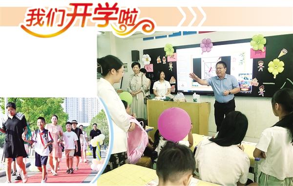 新学期、新梦想、新征程。9月1日,我市各中小学、幼儿园正式开学。右图:文昌小学校长走进一年级班级,与新生和家长见面,送去美好祝福,开启“开学第一课”。左图: 9月1日上午,周口市第四实验学校学生在家长陪伴下到学校报到。 记者 卢好亮 梁照曾 摄