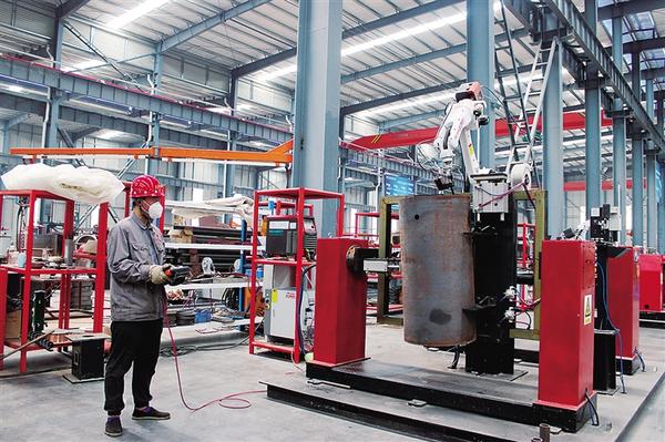 今年以来,太康紧抓项目建设,科学部署,全力推动重点项目建设取得新进展。图为在该县共享锅炉制造产业园内,智能化设备为锅炉生产赋能加力。 记者 张洪涛 摄