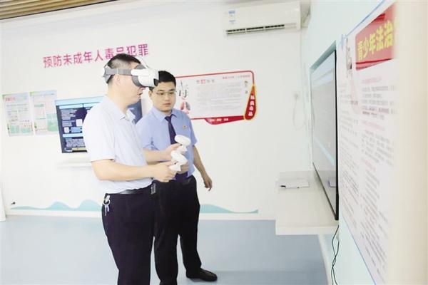 近日,项城市人大常委会调研组到项城市人民检察院调研预防未成年人违法犯罪工作。图为调研组成员佩戴VR眼镜,“沉浸式”体验法治教育。 通讯员 王春霞 赵揢 摄