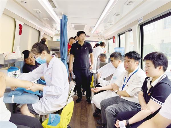 本报讯 (记者 徐松 通讯员 张洋 文/图) 8月28日,郸城县第二医健集团组织全体党员干部职工参与无偿献血活动。