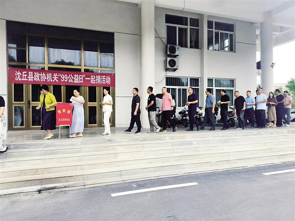 为进一步激发全社会支持和参与公益慈善事业的热情, 9月6日,沈丘县政协机关积极组织开展“99公益日”募捐活动。 记者 高洪驰 通讯员 马洁 摄