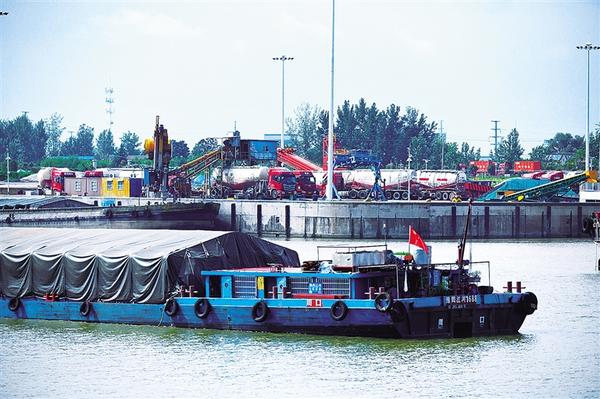 日前,一艘载满货物的船舶驶离周口港。据了解,沙颍河河道升级为三级通航标准后,通航能力将由原来的每年5000万吨提高到每年1亿吨,沙颍河河道因此也成为国家“2横1纵2网18线”的重要一线。记者 沈湛 摄