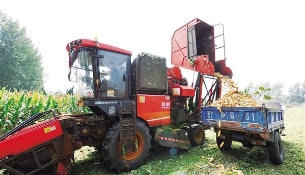 9月11日上午,项城市花园街道张寨村村民开始收割玉米。秋粮生产是周口市粮食生产的重要组成部分,今年全市秋粮种植面积979.7万亩,与去年相比持平略增(增加0.1万亩),其中玉米种植819.7万亩,仍是秋季主粮,目前,玉米开始进入收割期。 记者 梁照曾 摄