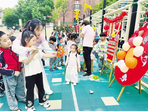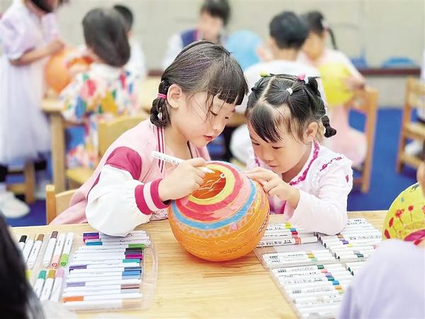 中秋节前夕,市城乡一体化示范区各幼儿园积极组织开展形式多样、内容丰富的庆祝活动,让学生沉浸式感受中华优秀传统文化的独特魅力。图一为老师带领小朋友体验“后羿射日”游戏。图二为小朋友制作灯笼。图三为小朋友展示手工作品。图四为老师和小朋友一起做手工。